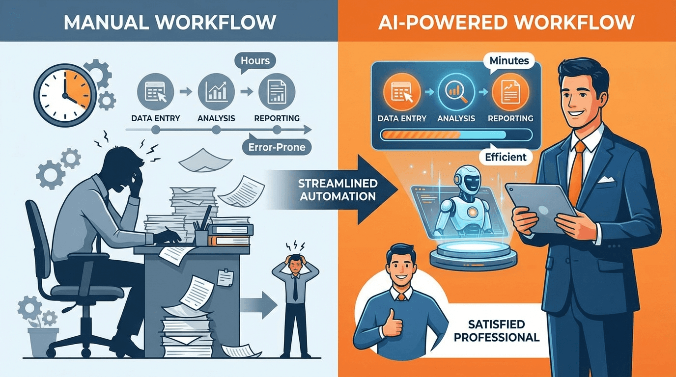 It's replacing the 60% of their workweek spent on manual research, data entry, and regulatory monitoring. The tedious stuff that burns people out and doesn't require strategic thinking.